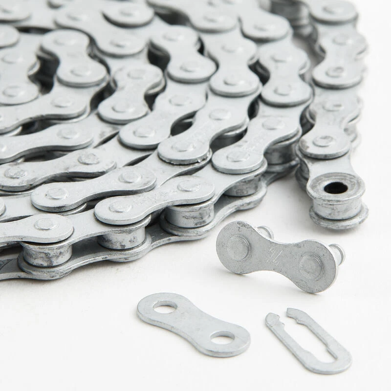 Conçue pour remplacer la chaîne de votre vélo équipé en transmission mono-vitesse.Notre chaîne a été conçue en collaboration avec KMC, une marque reconnu mondialement et leader en pièces de transmission de vélo. La chaîne a 110 maillons et est vendue avec attache rapide