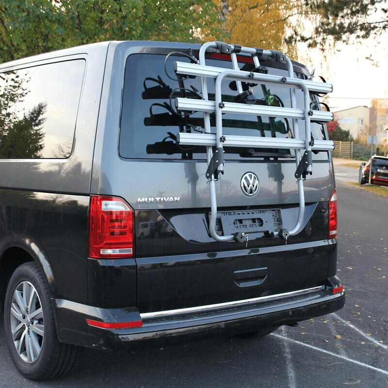 Ce porte-vélos au design élégant permet le transport de 3 vélos.