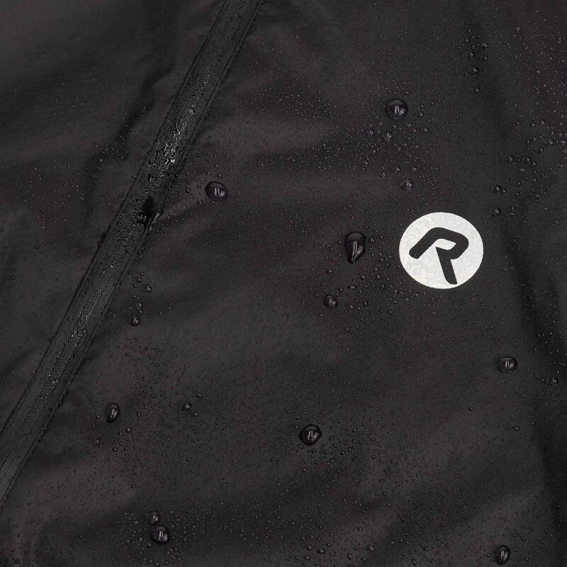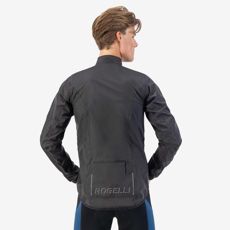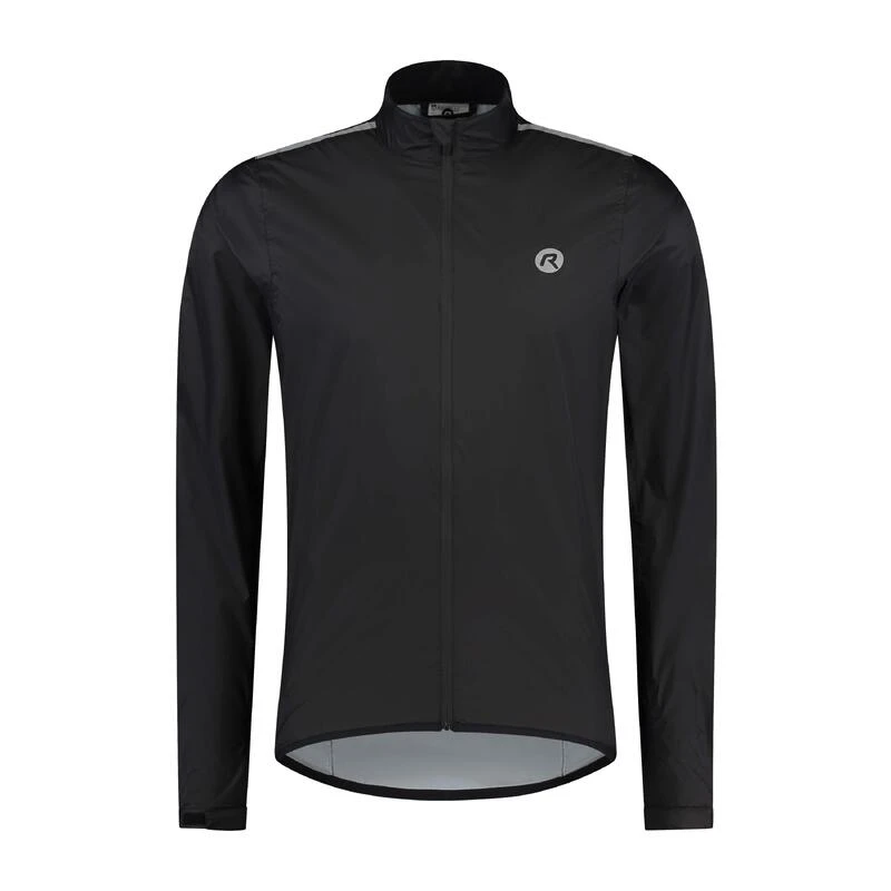 Veste de pluie pour cyclistes en tissu Aqualite hydrofuge et coupe-vent. Se plie en un petit paquet dans la poche arrière.