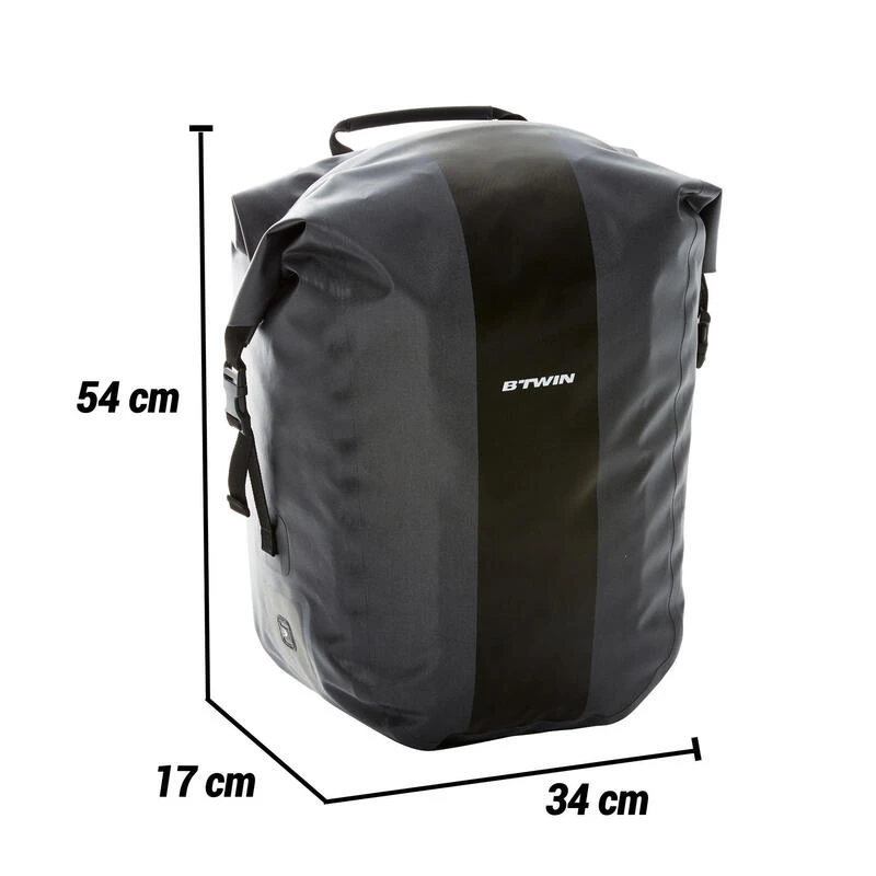 Cette sacoche de bonne capacité est conçue pour transporter les affaires du quotidien au sec sur le porte-bagages de votre vélo. Modèle imperméable.Une sacoches de 25 litres solide et pratique pour tous les jours, quelles que soient les conditions météorologiques.