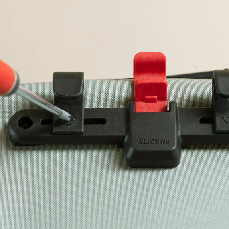Nouvelle fixation KOMPAKTRAIL (marque Klickfix) réglable en largeur, assurant une excellente stabilité et une meilleure facilité d’utilisation.