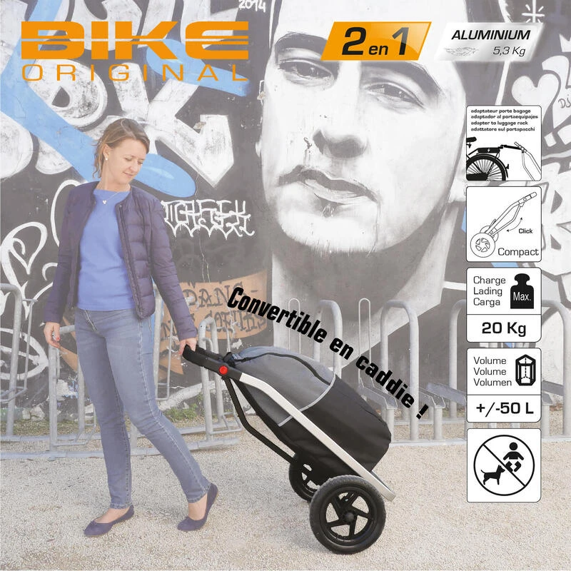Le Shopping Trailer BIKE ORIGINAL, a été conçu pour transporter facilement et confortablement vos charges lourdes à vélo ou à pied.