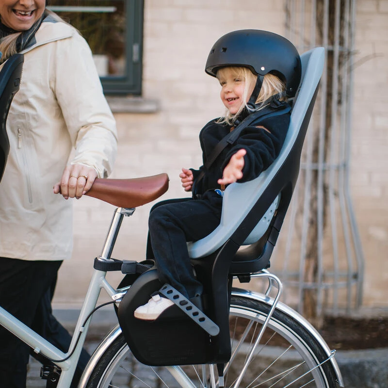 Siège vélo enfant monté à l’arrière, qui allie confort et style au quotidien.