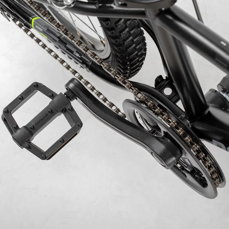 Le nouveau pédalier dispose d’une longueur de manivelle de 140 mm qui est adaptée à la longueur de jambe de l’enfant. Ce pédalier permet de démarrer le pédalage plus facilement. La manivelle est recouverte d’une protection pour éviter à l’enfant d’être en contact avec la partie métallique.