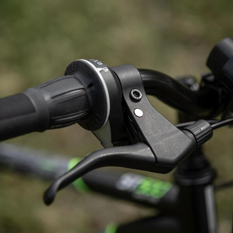 Ce vélo est équipé d’une poignée tournante pour passer les 6 vitesses : un système plus facile et plus sûr car l’enfant ne lâche pas le guidon.